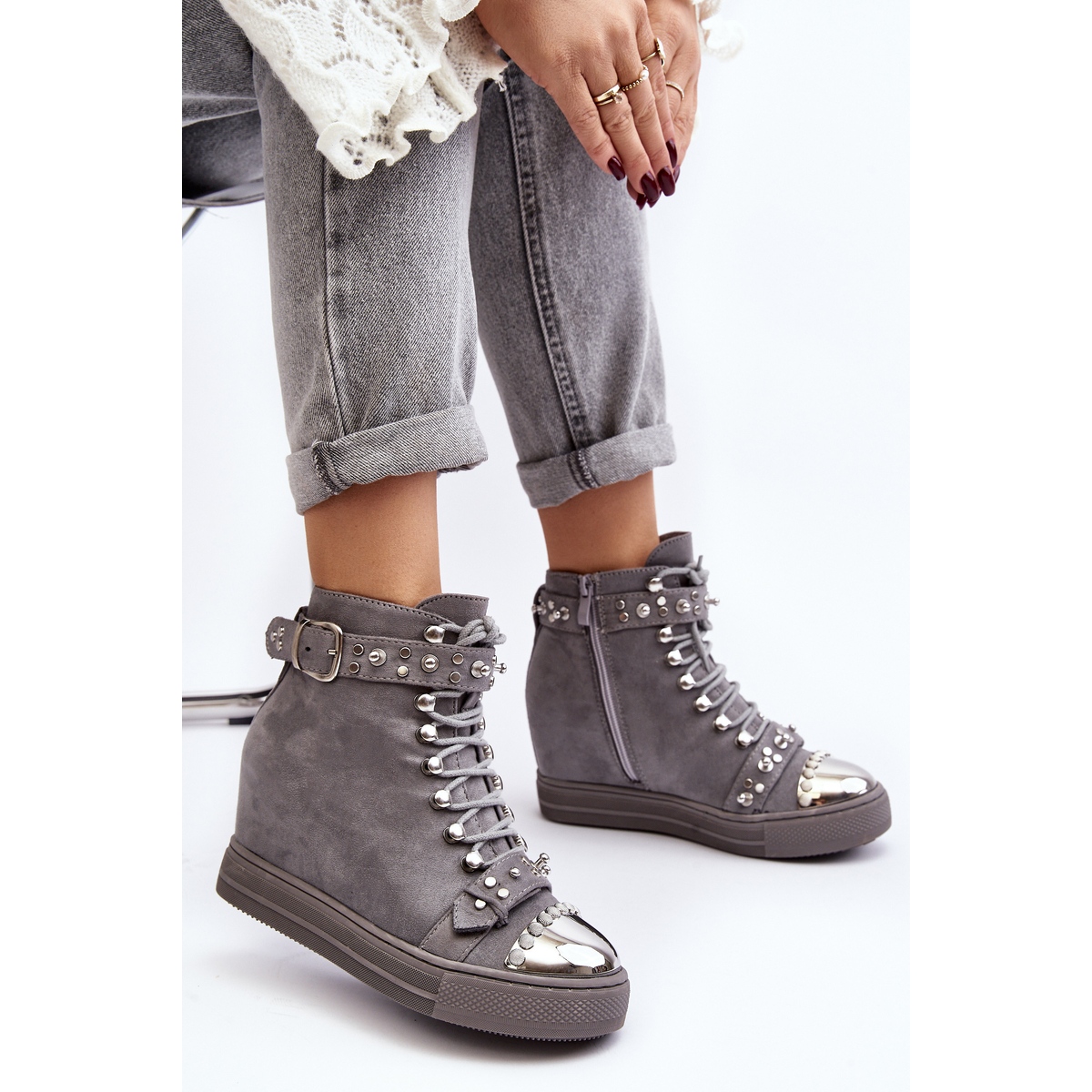 Yksityiskohdat: Eristetyt kiila saappaat strassit, mokka Lu Boo, harmaa