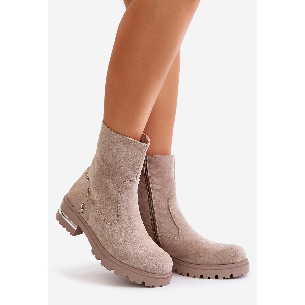 Yksityiskohdat: Eristetyt naisten nilkkurit ekologisesta mokkanahkasta vetoketjulla, Beige Narilie
