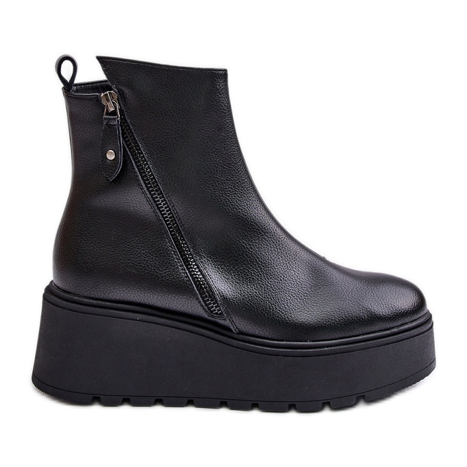 Yksityiskohdat: Eristetyt naisten saappaat kiilalla ja alustalla, luonnonnahkaa, musta Vinceza 58340