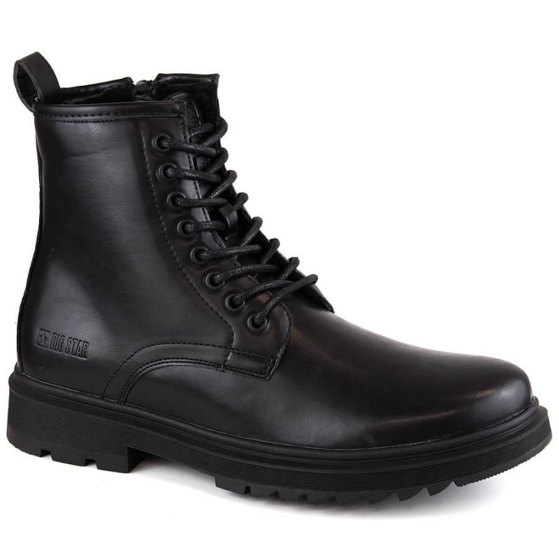 Miesten saappaat Big Star M Int1915 - musta, eristetty, käytännöllinen ja tyylikäs. Syksyisen talvikauden aikana suunniteltu korkealaatuisesta ekologisesta nahasta valmistettu mukavuus, joka on päivittäin pukeutunut ulkokengien toiminnallisuuteen.