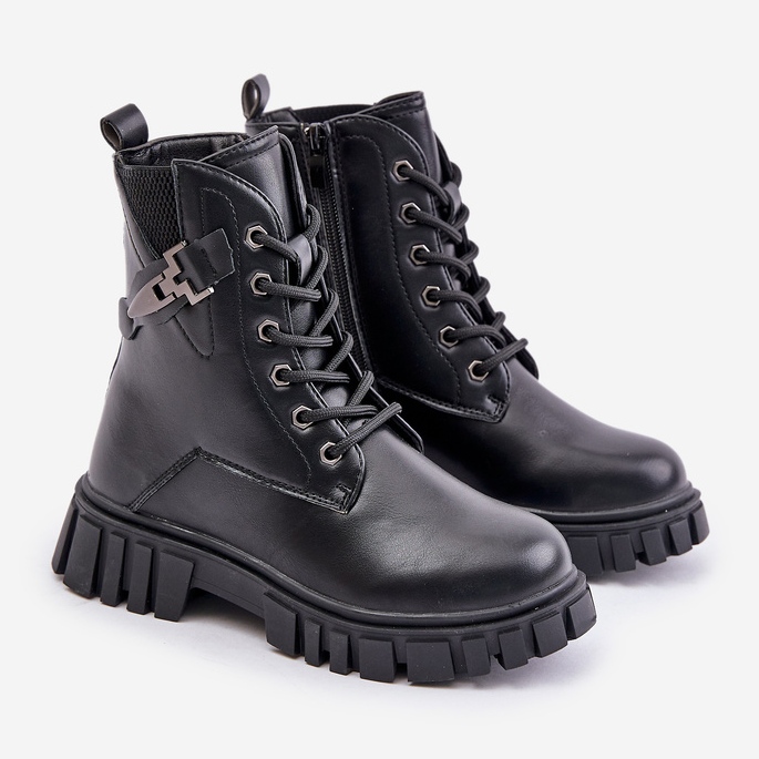 Yksityiskohdat: News Eristetyt tyttöjen nilkkurit, joissa vetoketju ja koristelu, musta Zinnirella