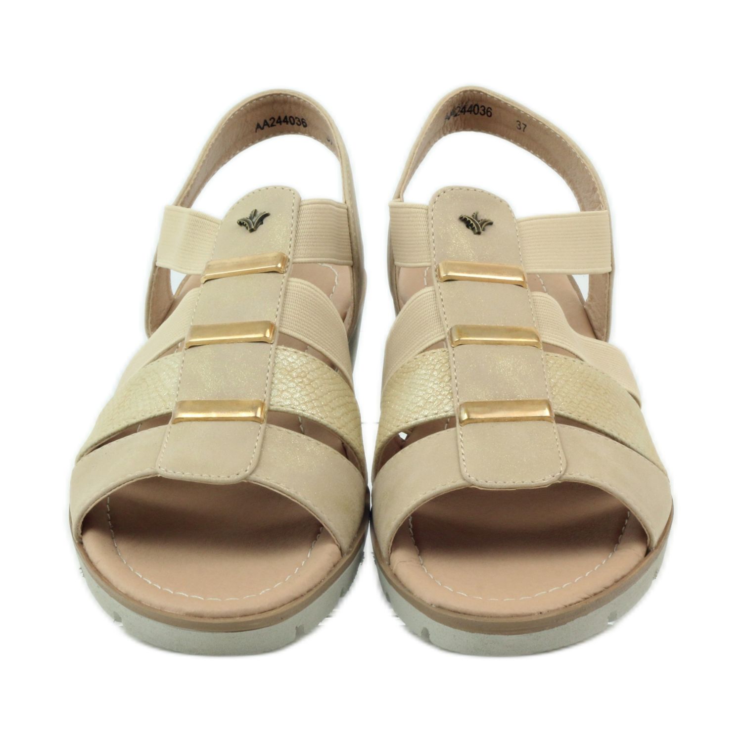 Pehmeällä vaahdolla rikastettu ekologinen nahkapohjallinen takaa mukavuuden jokaisessa vaiheessa ja kevyt, iskuja vaimentava vaahtomuovipohja suojaa mikrovammilta. Tämä tekee niistä täydelliset sandaalit herkkäjalkaisille ihmisille. Niissä on klassinen muotoilu 3,5 cm korkealla kiilalla, joka lisää hienovaraista eleganssia, ja värivalikoima - ruskea, beige, keltainen ja kulta - tekee niistä helppoja yhdistää mihin tahansa kesätyyliin.