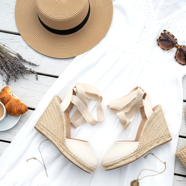 Wedge espadrillit ovat ranskalaisten naisten suosikki kesäkengät. Ne ovat mukavia, vakaita ja sopivat mihin tahansa mekkoon. Näytämme sinulle, kuinka voit käyttää ja sitoa niitä, jotta jalkojasi hoikistetaan.