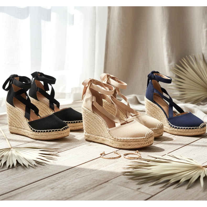 Yleisimmät mallit ovat beige, musta tai tummansininen. Jos haluat optisesti pidentää jalkojasi, valitse beigenväriset espadrillit, jotka sulautuvat ihosi väriin (tai rusketukseen). Muista, että nilkan ympärille sitominen voi lyhentää jalkaa, joten lyhyiden ihmisten tulee olla varovaisia liian leveiden nauhojen kanssa.