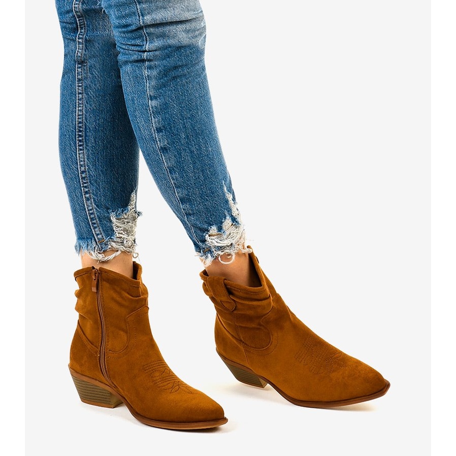Yksityiskohdat: Euphelea ruskea mokkanahka korkea cowboy saappaat
