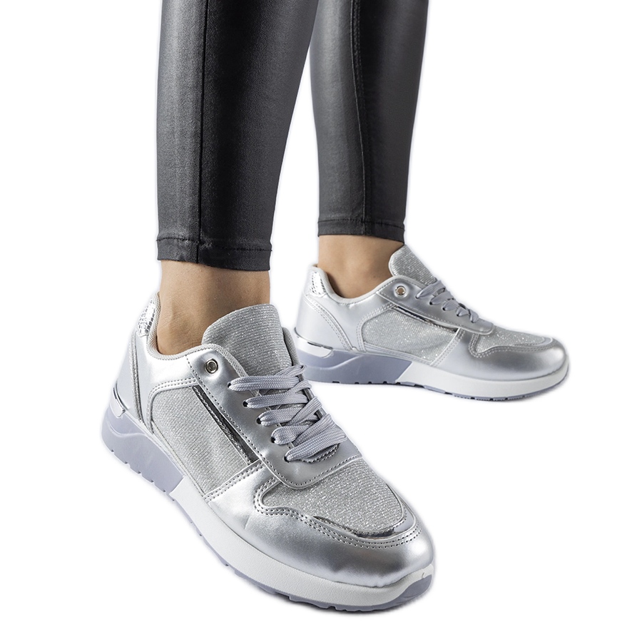 Yksityiskohdat: Facondon harmaat lenkkarit koristelangalla hopea
