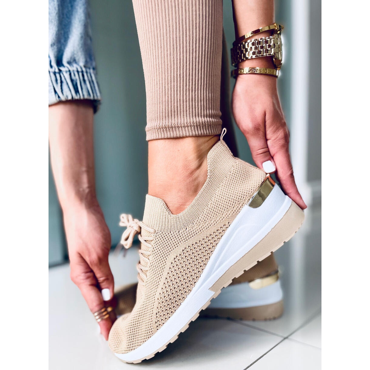 Faggio-sukkaurheilukengät khaki beigen sävyissä ovat täydellinen valinta mukavuutta ja muodikas tyyliä arvostaville naisille. Näissä 6 cm korkeissa kiilakengissä yhdistyvät urheilullinen luonne ja elegantti ulkonäkö, mikä tekee niistä sopivia jokapäiväiseen käyttöön niin kävelyllä kuin ystävien kanssa tapaamisessa.