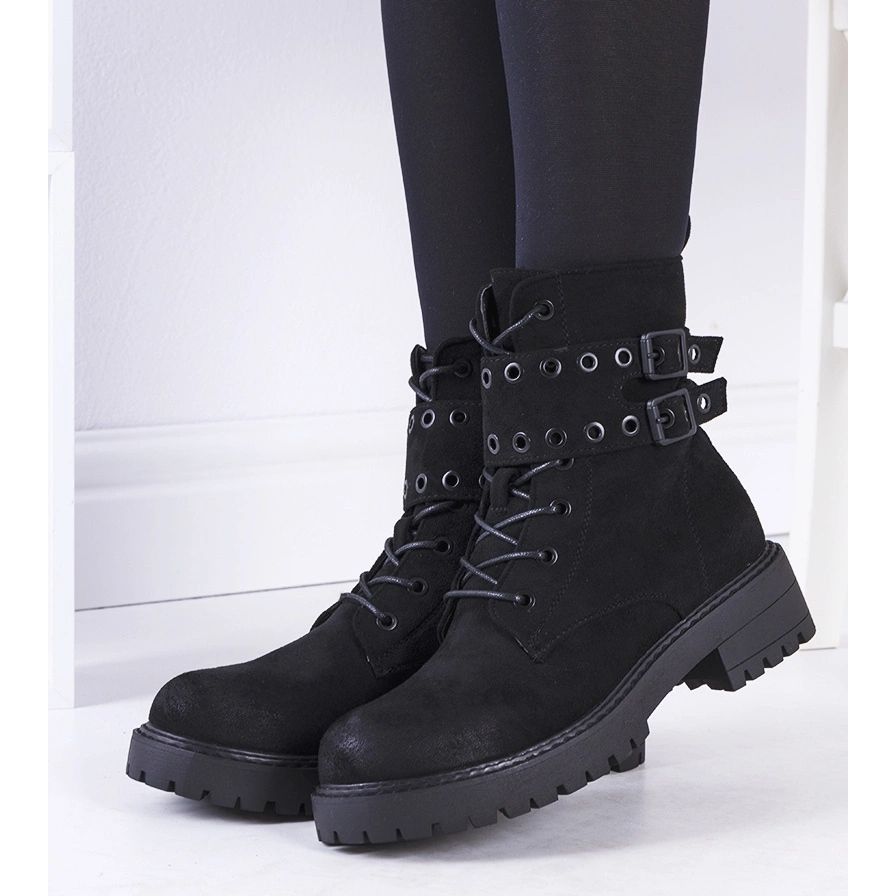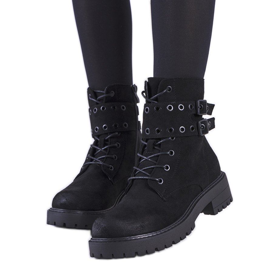 Klassiset, mustat Fallkirk -ansastajat ovat yhdistelmä mukavuutta ja muodikasta raakaa tyyliä. Asetettu paksulle, suojatulle muoviselle pohjalle, pyöristetyllä nenällä ja koristevyöllä soljilla, ne ovat täydellisiä päivittäisiin, rentoihin tyyliin. Ylävalmistettu mokkanahasta ekologisesta nahasta, eristetty sisustus - täydellinen syksy/talvikaudella.