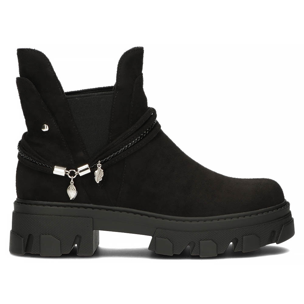 Näiden saappaiden erottuva piirre on vaikuttava yksityiskohta ketjun muodossa, joka lisää modernia luonnetta ja erottaa ne muista malleista. Aloita seikkailusi muodin parissa yhdistämällä nämä nilkkurit arjen suosikkityyliisi, vuodenajasta riippumatta!