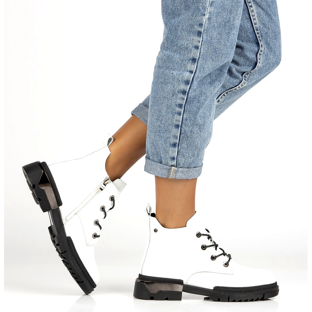Tyylikäs, lakattu Filippo DBT4173 -saappaat klassisessa valkoisessa värissä yhdistävät tyylikkään ilmeen huolellisella viimeistelyllä. Valmistettu luonnollisesta lakallisesta nahasta, joka on eristetty miellyttävällä, lyhyellä turkilla, ne tarjoavat lämpöä ja mukavuutta viileämpinä päivinä. Litteä kantapää, jonka korkeus on 3,5 cm ja pyöristetty nenätakuu vakaus ja mukavuus koko päivän. Vetoketjun ja nauhan kiinnitys helpottavat yläosan istuvuutta ja sivussa oleva hienovarainen logo lisää tyyliä.