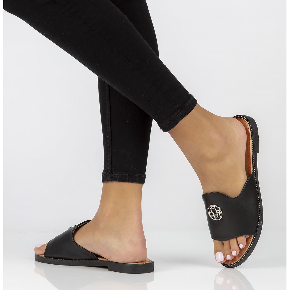 Varvastossuissa on 2 cm:n litteä kantapää, mikä tekee niistä ihanteellisen valinnan arkisarjoihin. Suoran, pyöreän kärjen ja kevyen synteettisen pohjan ansiosta voit nauttia vakaudesta ja mukavuudesta jokaisella askeleella. Niiden universaali musta väri tekee niistä yhteensopivia moniin tyyleihin - sekä arkiasuihin että hieman tyylikkäämpiin yhdistelmiin.