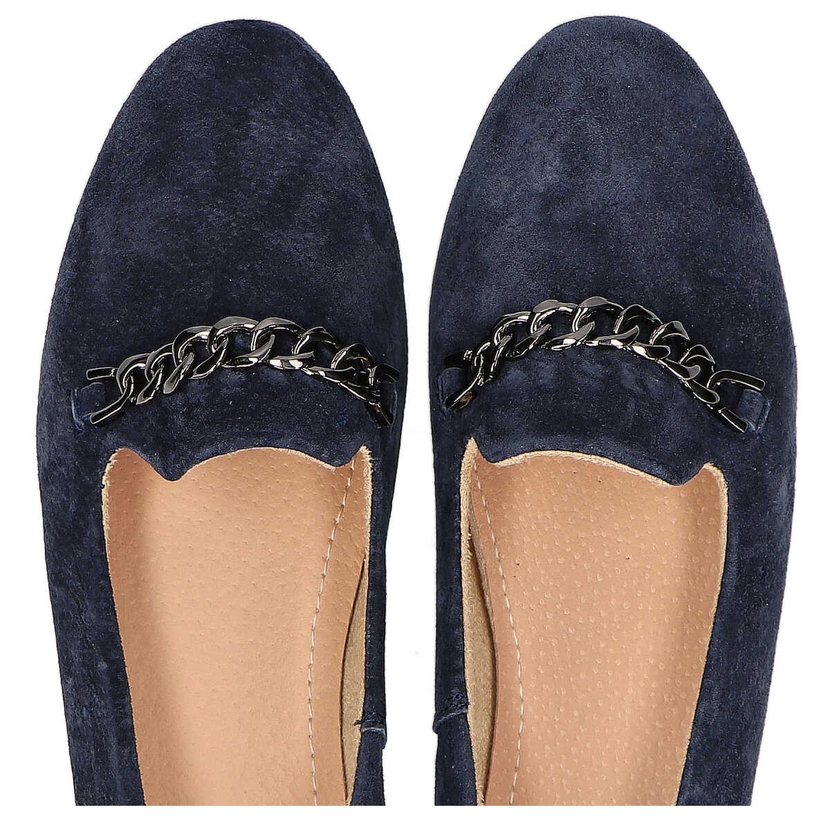 Tämä malli erottuu litteästä 0,5 cm korkeasta kantapäästä ja hienovaraisesta 1,5 cm korkeasta alustasta, joka lisää hieman keveyttä ja tyyliä. Varpaan mantelin muotoinen muoto korostaa kenkien eleganssia ja laivastonsininen väri yhdistettynä ruskeaan pohjaan luo harmonisen kokonaisuuden.
