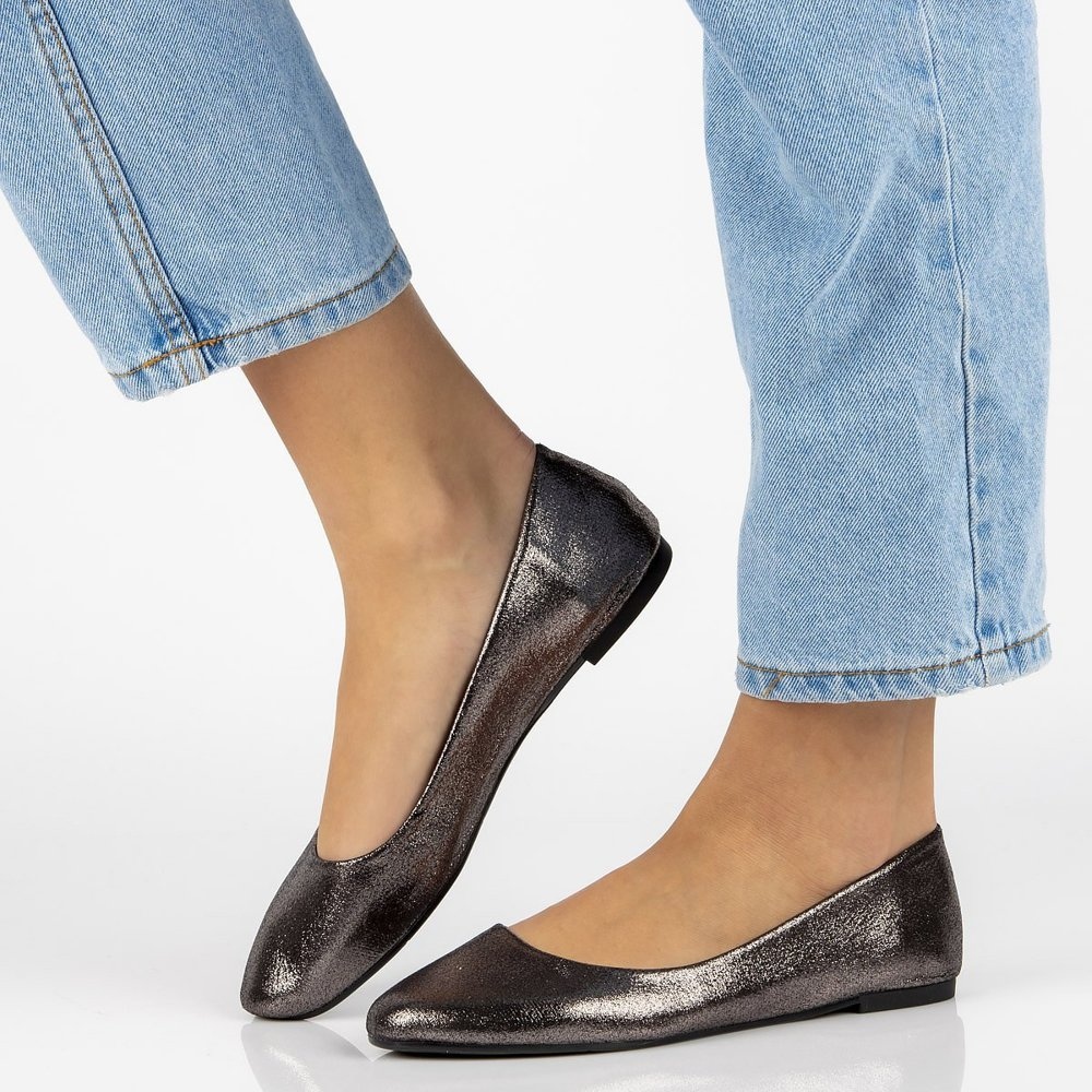 Minimalistisesta muotoilusta huolimatta nämä grafiittiset balettihuoneet erottuvat metallisista korosteista, jotka lisäävät tyylikkyyttä. Pyöreä kärki ja 5,5 cm korkea varsi takaavat täydellisen istuvuuden, ja G-leveys tekee kengistä sopivat useimmille naisille.