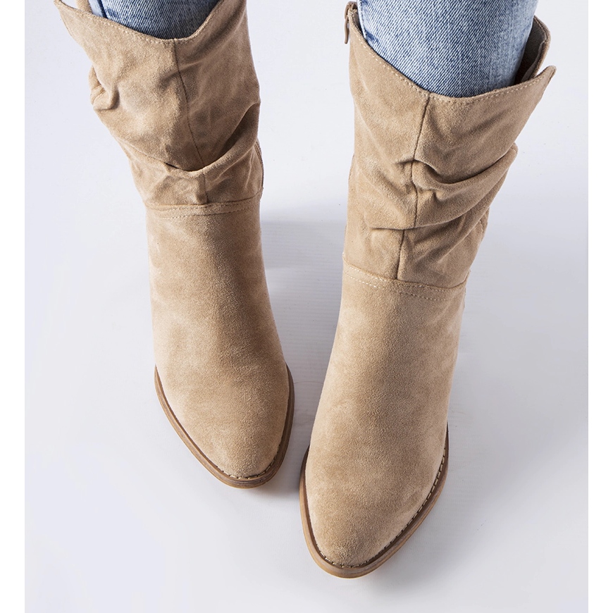 Filomena beige cowboy -saappaat ovat yhdistelmä tyyliä ja toiminnallisuutta - täydellinen komplementti vaatekaappiin kylmempinä kuukausina.