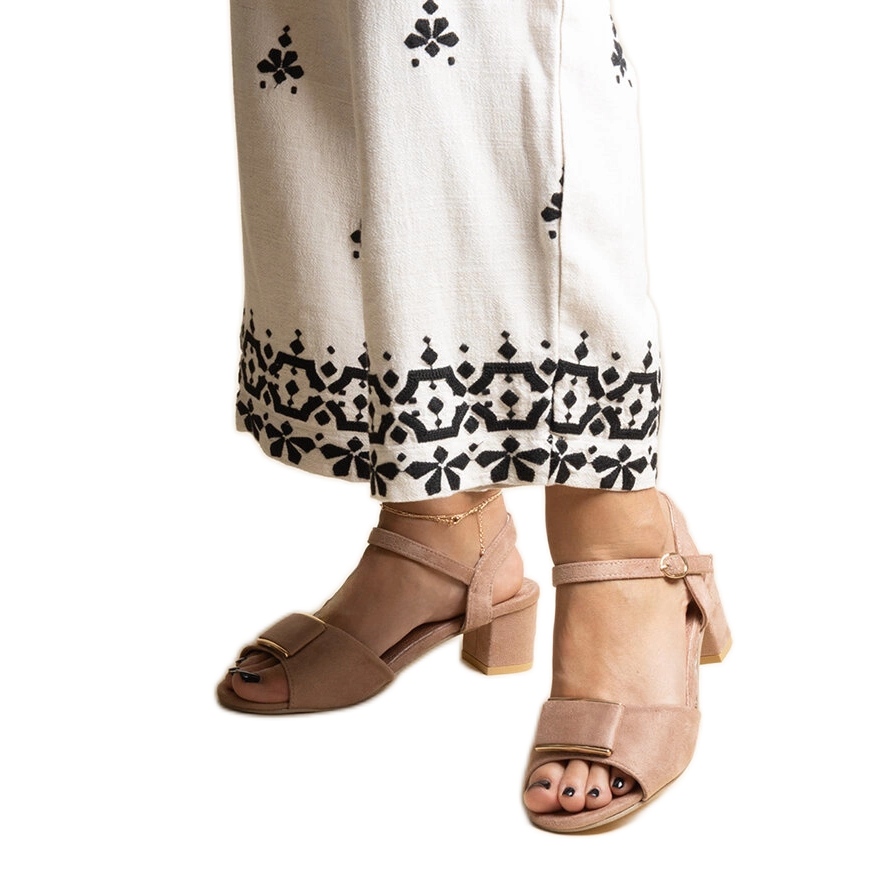 Pimeät beige-sandaalit matalalla Frederica-postissa on välttämätön kesäpäivien ajan, joissa yhdistyvät eleganssi ja mukavuus. Nämä naisten sandaalit, jotka on valmistettu korkealaatuisesta nahka -ekologisesta mokkanahasta, eivät vain näytä kauniilta, vaan myös varmistavat mukavuuden pitkiä tunteja. Heidän klassinen leikkaus matalalla kantapäällä, jonka korkeus on 5 cm, tekee heistä täydellisen valinnan sekä päivittäisille kävelylle ympäri kaupunkia että iltamatkoja varten.