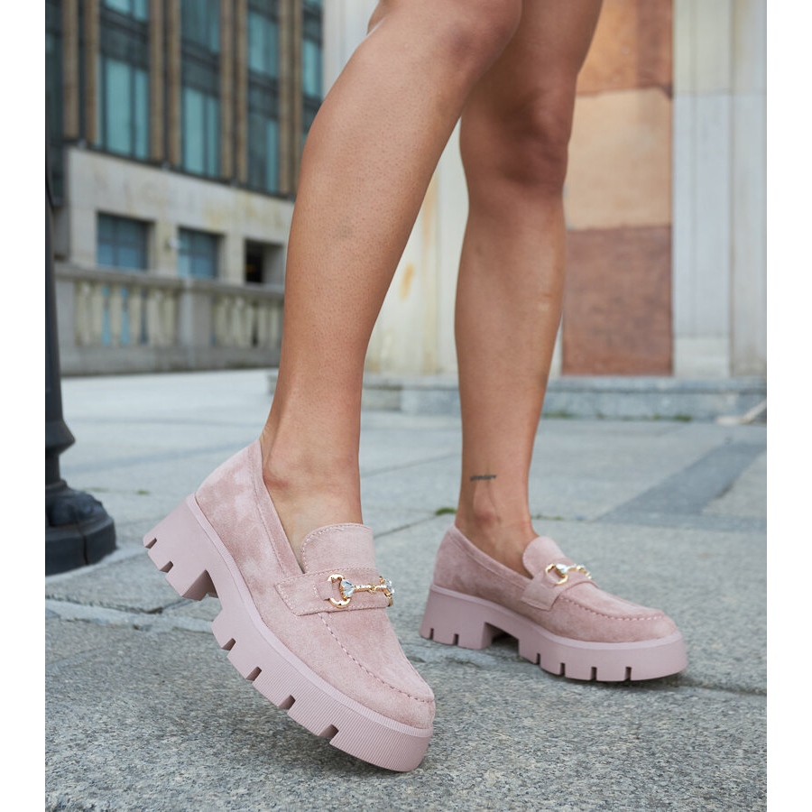 Yksityiskohdat: Gaiolan vaaleanpunaiset mokasiinit soljella ja strassilla vaaleanpunainen