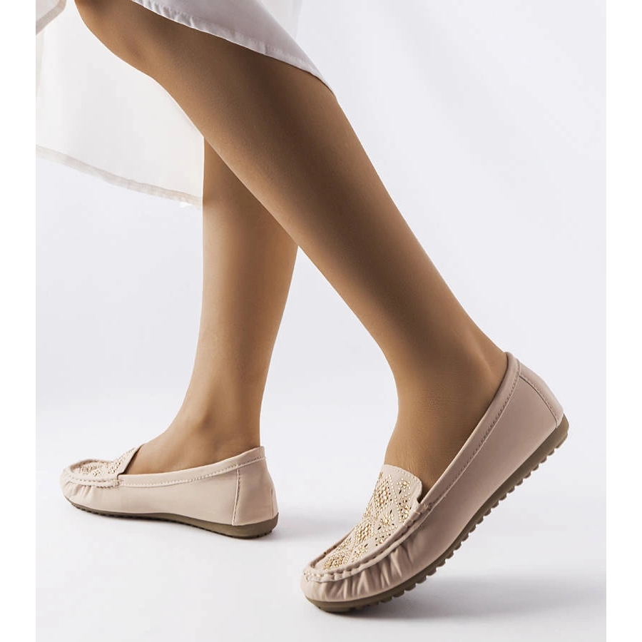 Beige-mokkasiinit, jotka on koristeltu gamache zirkon-malli TY-80