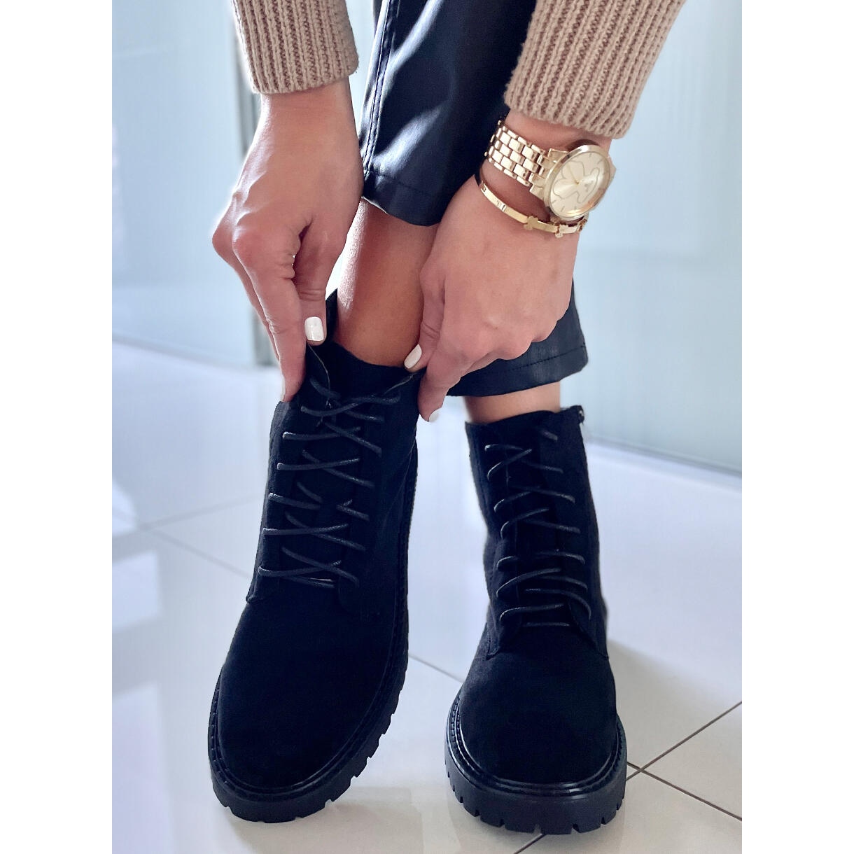 Yksityiskohdat: PA1 Gaten Mustat mokkanahkaiset nauhasaappaat