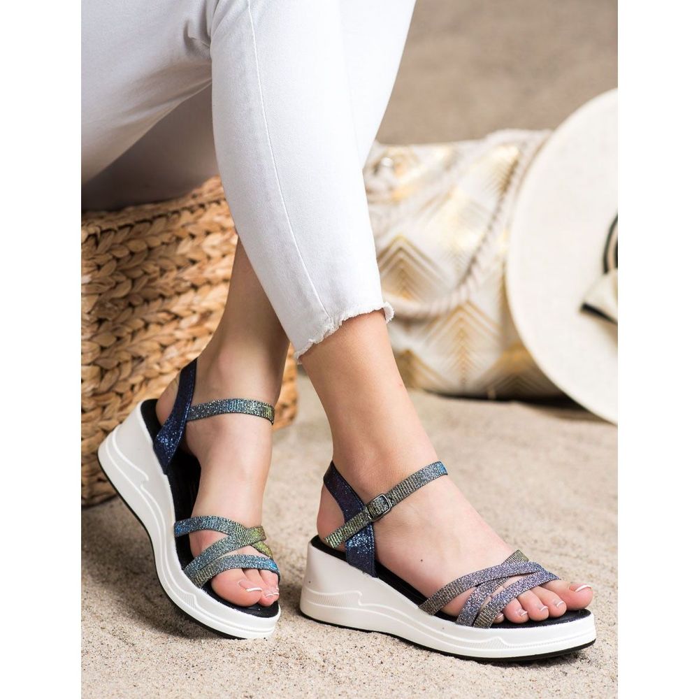 Yksityiskohdat: Small Swan Glitter sandaalit Wedge tummansininen harmaa