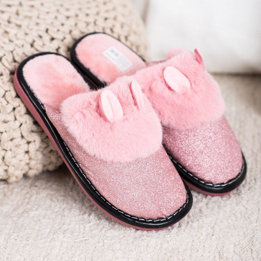 Yksityiskohdat: Bona Glitter -tossut vaurioilla vaaleanpunainen