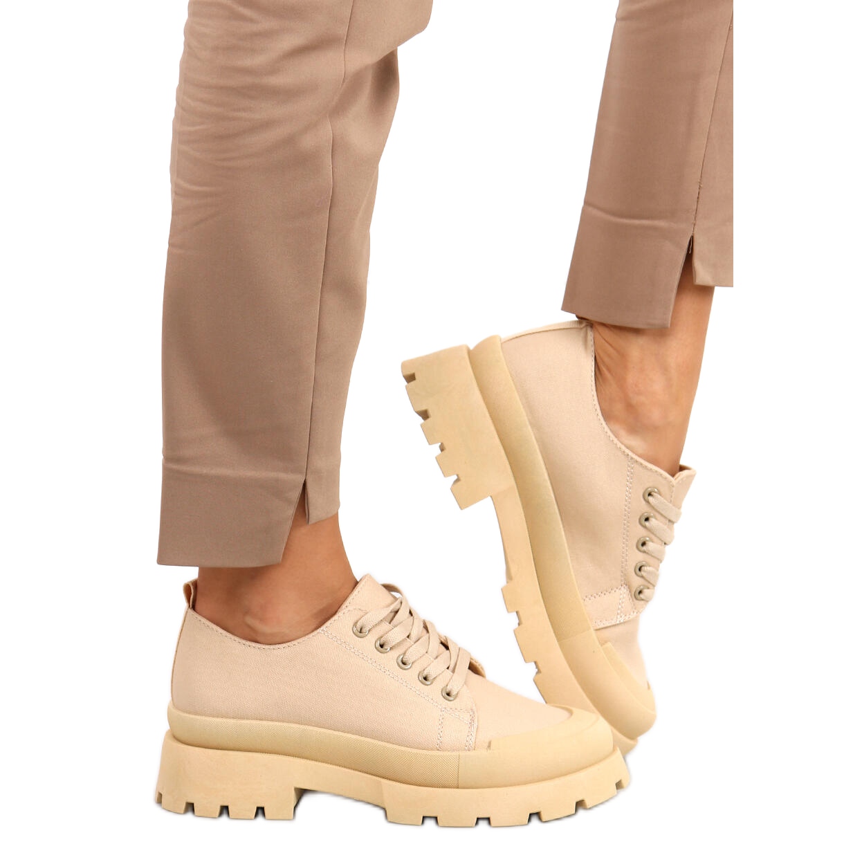 Löydä mukavuuden ja tyylin uusi ulottuvuus khakin ja beigen sävyissä olevilla Golv-vaelluslenkkarilla! Nämä paksupohjaiset naisten kangaskengät ovat täydellinen valinta kaikille alkuperäisten ratkaisujen ystäville. Tilaisuudesta riippumatta näytät ja tuntuu hyvältä Golv-lenkkareissa.