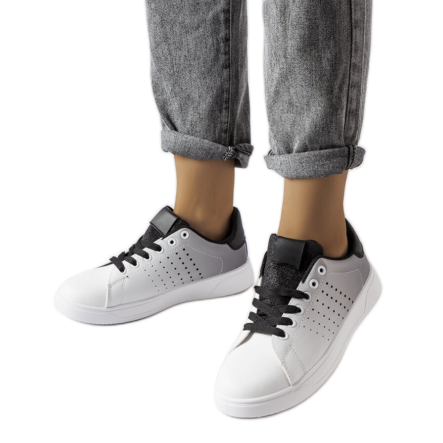 Tyylikkäät lenkkarit Gordon (malli KK-362), jolla on hienovarainen Ombre-efekti, yhdistävät klassisen valkoisen värin mustilla aksentteilla. Valmistettu ekologisesta nahasta, kumipohjalla, ne toimivat mukavina, kaupunkikenginä päivittäin.