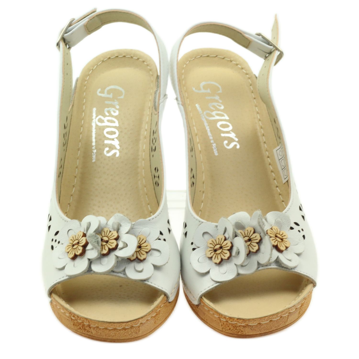 Valkoiset Gregors 648 wedge sandaalit ovat täydellinen valinta mukavuutta ja muodikasta tyyliä arvostaville naisille. Puolalaisen Gregorsin valmistamat sandaalit yhdistävät laadun, mukavuuden ja eleganssin. Korkealaatuisen, luonnollisen pintanahan käyttö tekee kengistä paitsi kestäviä, myös erittäin miellyttäviä käyttää.