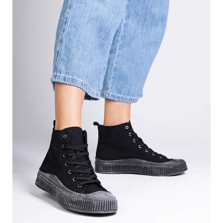 Tutustu muotiin ja mukavuuteen mustilla Guerrino high platform tennareilla! Nämä erittäin tyylikkäät lenkkarit ovat todellinen must-have kesäpäivinä. Valmistettu ilmavasta kankaasta, ne tarjoavat mukavuutta jopa kuumimpina päivinä antaen jalkojen hengittää. Pyöreä varvas antaa niille alkuperäisen luonteen, ja nauhoituksen ansiosta niitä voidaan säätää täydellisesti jalkaan.