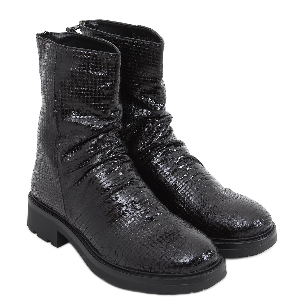 Gunn Black -malli erottuu kohokuvioidusta tekstuuristaan ja alkuperäisestä eläinaiheesta, joka herättää huomion ja lisää luonnetta mihin tahansa tyyliin. Kengän sisäpuoli on vuorattu herkällä turkilla, joka tarjoaa erinomaisen eristyksen ja sopii täydellisesti kylmiin päiviin. Pyöreä kärki ja litteä, leveä 4 cm korkea kantapää takaavat käyttömukavuuden, ja synteettisestä materiaalista valmistettu pohja takaa lujuuden ja kestävyyden.