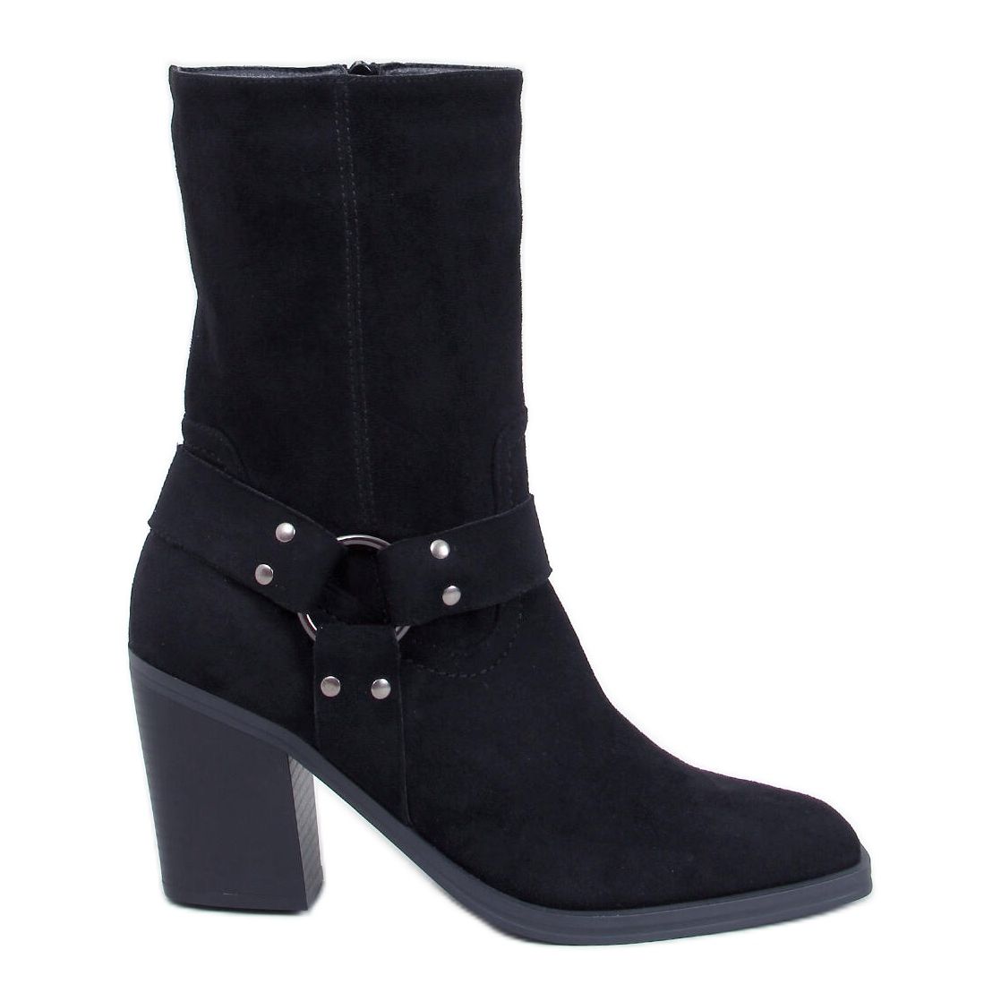 Tutustu tyylikkyyteen ja mukavuuteen yhdessä - mokkanahkaiset cowboy saappaat Hardin Black! Näille ainutlaatuisille naiskengille on ominaista korkea yläosa ja alkuperäinen leikkaus, jossa on neliötyökaluja, jotka antavat heille modernin lietettä. Yläosan sivulle asetettu vetoketjullinen kiinnitys tekee jalkineiden asettamisesta erittäin helppoa ja kätevää.