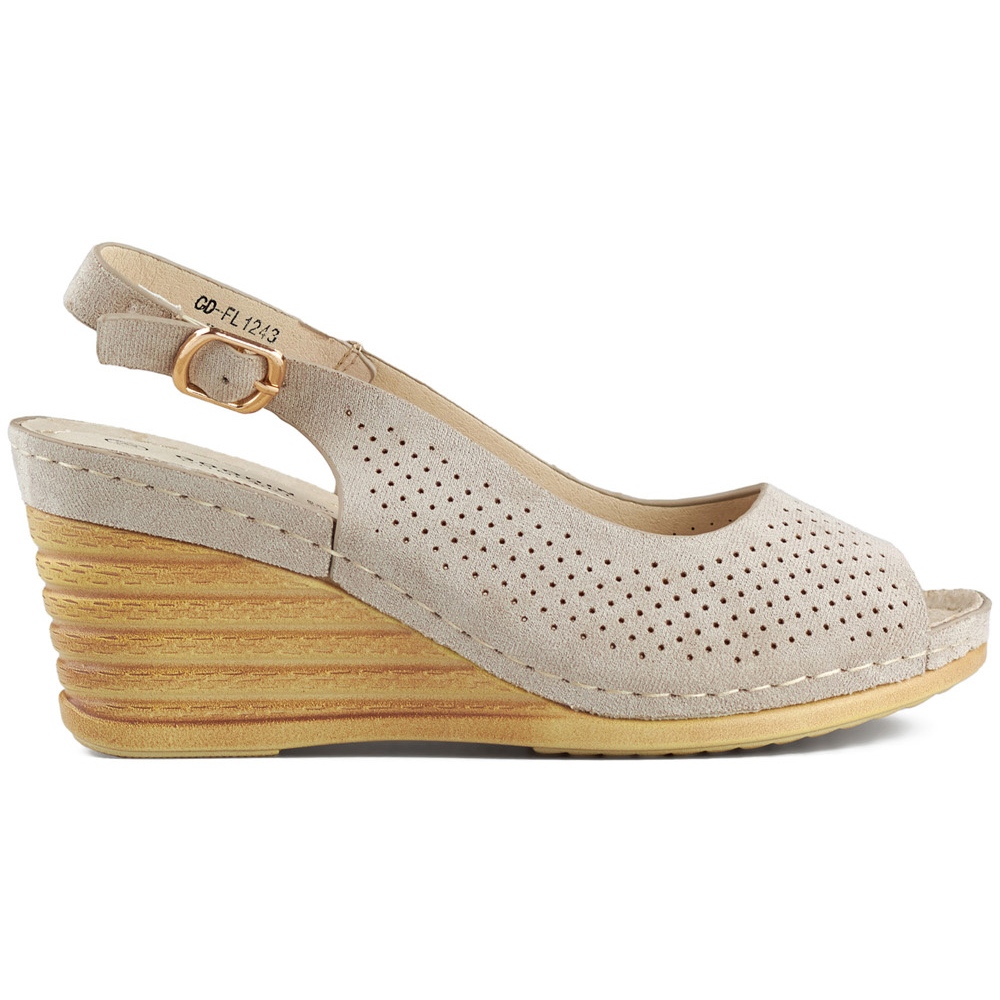Sandaalit on varustettu mukavalla luonnollisella nahkalla, joka tarjoaa erinomaisen ilmanvaihdon ja pehmeyden joka vaiheessa. 7,5 cm: n kiilakorkeus pidentää jalkoja optisesti, luomalla aistillisen siluetin ja soljen käytännöllinen kiinnitys ja liukuleikkaus tekevät niistä asettamalla ne nopeasti ja yksinkertaiset.