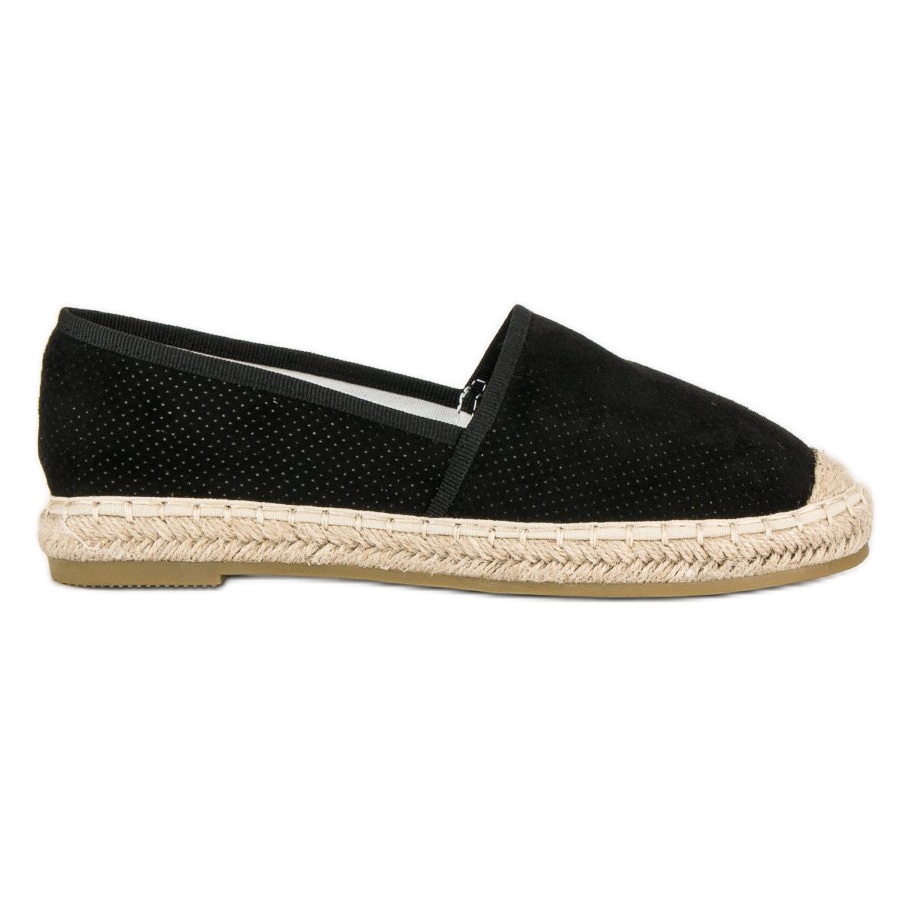 Näiden harjakattoisten espadrillien musta väri tekee niistä yhteensopivia moniin eri asuihin - ilmavista mekoista shortseihin ja rentoihin farkkuihin. Valitsemalla Bestelle-espadrillit sijoitat universaaliin ja muodikkaan vaatekappaleeseen, joka toimii hyvin moneen otteeseen. Älä odota enää ja lisää ne kokoelmaasi jo tänään!