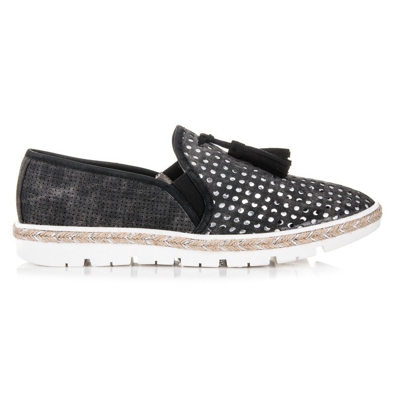 Kylie Openwork Slipony Espadrilles ovat täydellinen tarjous kevääseen ja kesään, jotka sopivat useisiin tyyleihin - urheilullisesta tyylikkäämpään. Niiden universaali musta väri tekee niistä sopivat moniin yhdistelmiin ja lisäävät niihin ainutlaatuista luonnetta. Löydä oma tyylisi näillä ainutlaatuisilla sliponeilla!