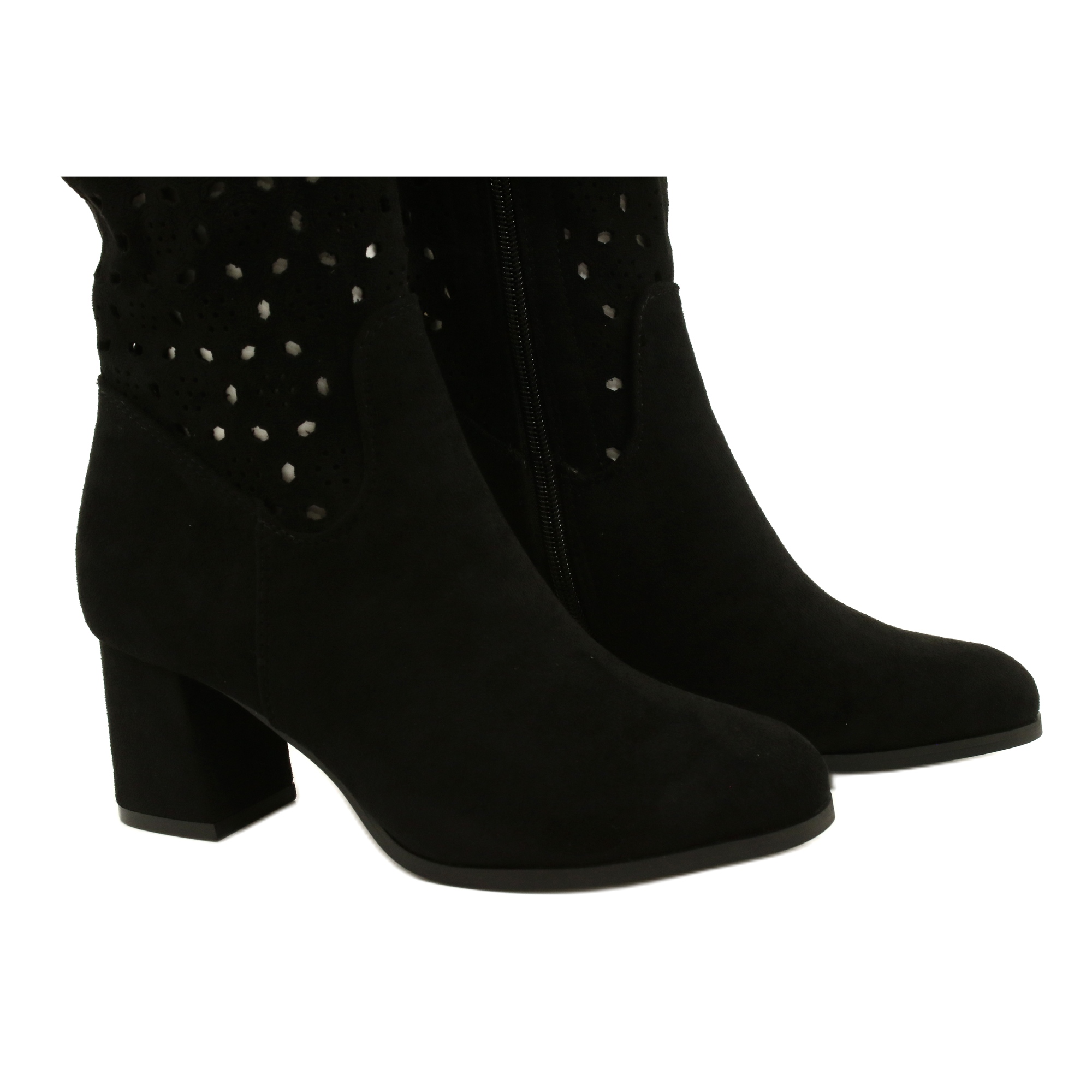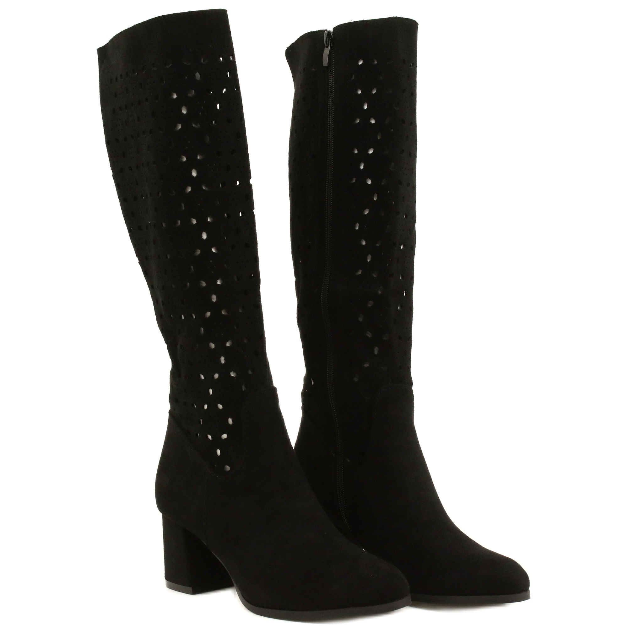 Löydä eleganssia ja mukavuutta M.Daszyński-tuotemerkin harjakattoisilla korkokenkillä - malli SA156-10 klassisessa mustassa värissä. Näissä kauniissa saappaissa, jotka sopivat täydellisesti kevääseen ja syksyyn, yhdistyvät moderni muotoilu ja toimivuus.
