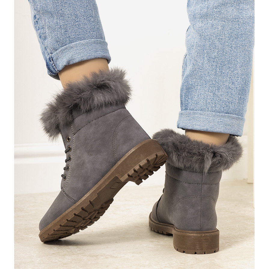 LeBatelier trappereissa on vakionumerointi, joten voit helposti valita oikean koon. Kenkien korkeus on 15,5 cm, ja niiden nilkkatyyli tekee niistä paitsi toimivia myös muodikkaita. Harmaa väri korostaa niiden yleismaailmallisuutta ja pyöreä kärki lisää hienovaraisuutta.