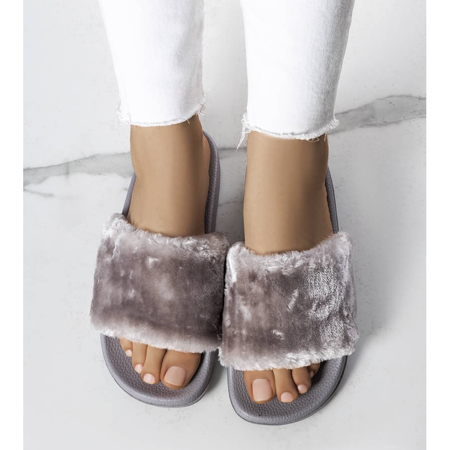 Varvastossujen klassinen harmaa väri sopii hyvin eri tyyleihin, ja samanvärinen yhtenäinen pohja luo yhtenäisen kokonaisuuden. Leveä turkiksen päällystetty vyö lisää charmia ja ainutlaatuista luonnetta. Lisäksi varpaiden lievä profilointi saa varvastossut istumaan täydellisesti jalan muotoon.
