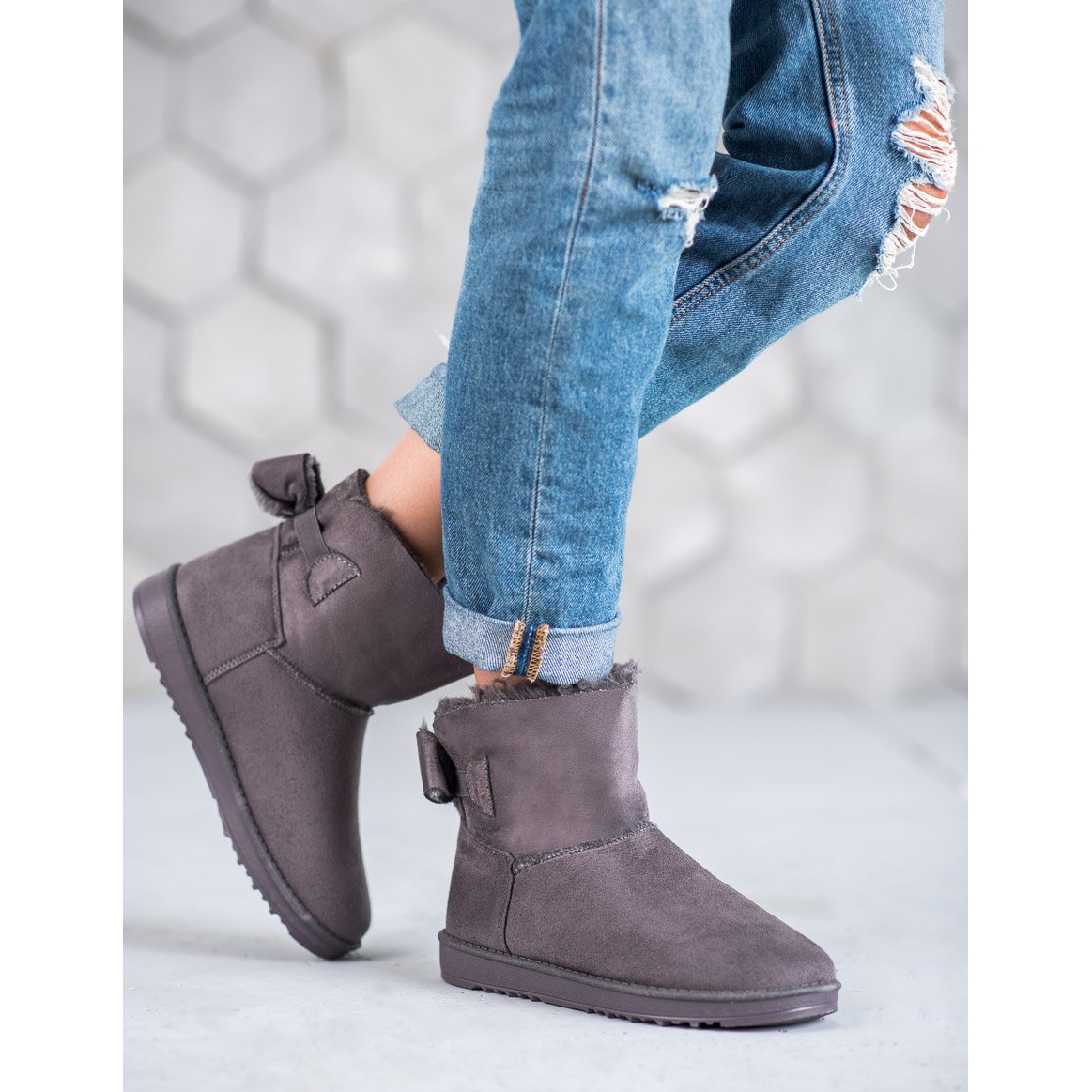Harmaat rusetilla varustetut muklukit ovat täydellinen valinta tulevaan syys-talvikauteen jokaiselle naiselle, joka arvostaa mukavuuden ja tyylin yhdistelmää. Nämä ekologisesta mokkanahkasta valmistetut kengät eivät ainoastaan näytä äärimmäisen tyylikkäiltä, vaan ne myös peittävät jalkojasi miellyttävästi pitäen ne lämpiminä sisäpuolen turkiseristyksen ansiosta.