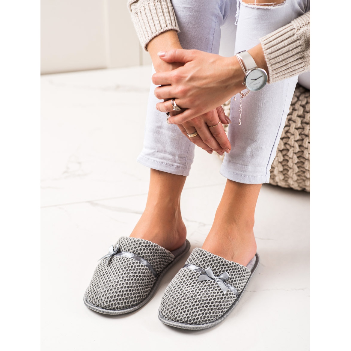 Löydä eleganssia ja mukavuutta joka tilanteessa harmailla TRENDI-tossuilla, joissa on rusetti. Nämä ainutlaatuiset naisten kengät yhdistävät rento tyylin arjen mukavuuteen ja vastaavat täydellisesti modernin naisen tarpeita. Valmistettu korkealaatuisista tekstiilimateriaaleista, ne tarjoavat paitsi mukavuuden myös muodikkaan ulkonäön.