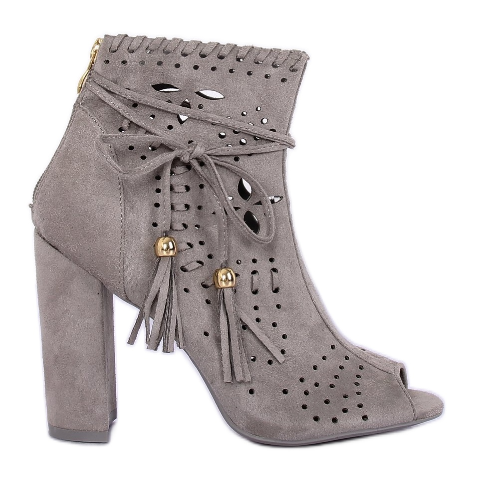 Löydä ainutlaatuiset avokärkiset nilkkurit tyylikkäässä harmaan sävyssä M285P Grey, joista tulee täydellinen lisä vaatekaappiisi! Näissä ilmiömäisissä naisten kengissä yhdistyvät moderni muotoilu ja käyttömukavuus. Muodikas leikkaus ja hoikka 11 cm kantapää korostaa jalkoja ja antaa jokaiselle tyylille naisellista luonnetta.