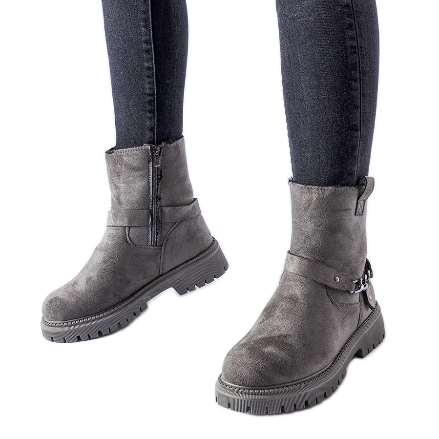 Harmaa eristetty Sedico-saappaat (malli E8217-5) -tyyli ja mukavuus kylminä päivinä. Klassinen, heikentynyt harmaa ja hienovarainen ketju yksityiskohtana saavat saappaat täydellisesti täydentämään talvi- ja syksyn tyyliä, rentosta hieman tyylikkäimpiin. Suuri mokkanahka -ekologisesta nahasta näyttää muodikkaalta ja miellyttävästi kosketukselta, ja eristys sisällä on lämpökuvuus jopa alhaisissa lämpötiloissa.