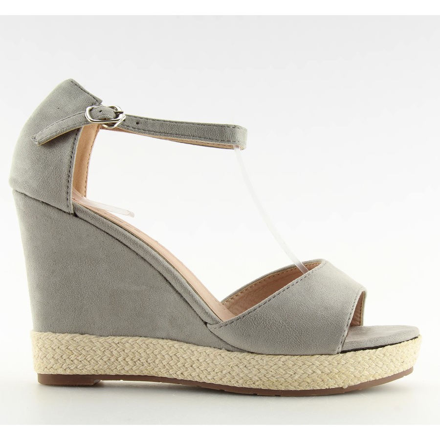 Yksityiskohdat: Harmaat harmaat sandaalit kiilakoroilla