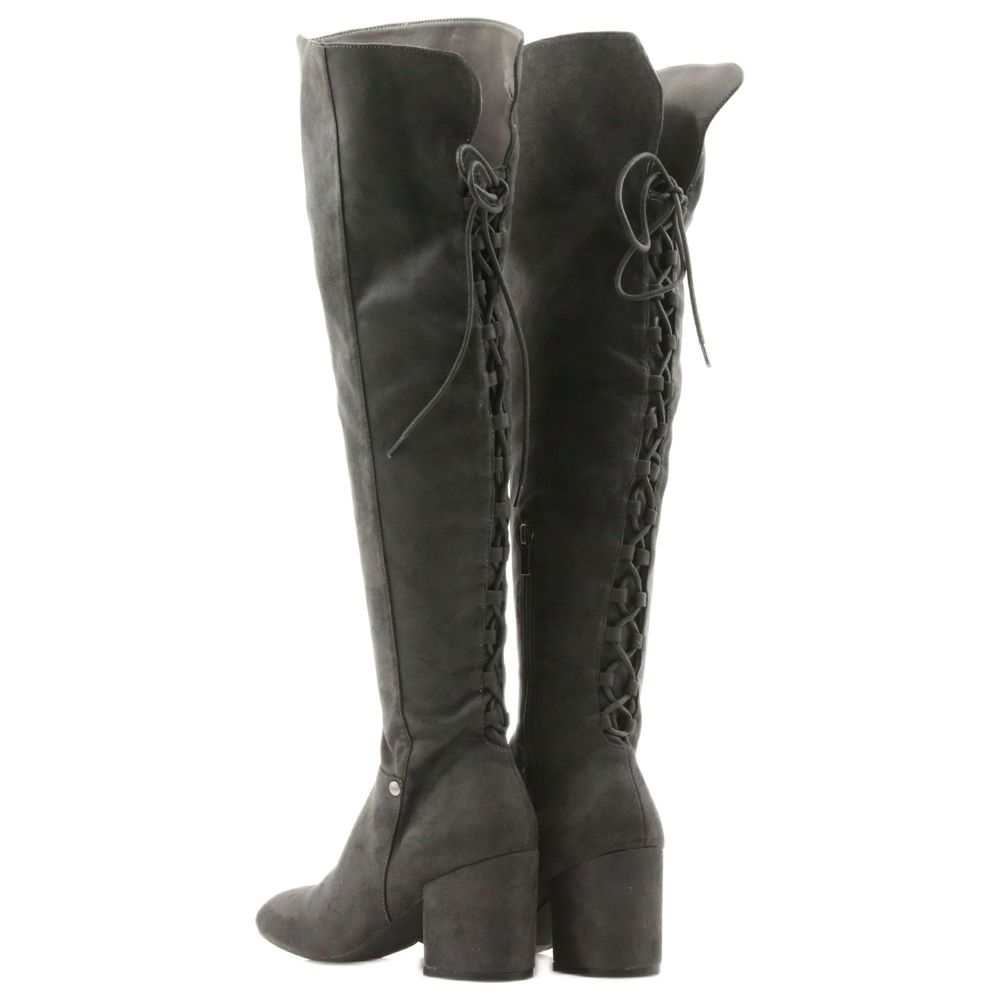 Grey Big Star 274519 korkeakorkoiset saappaat ovat täydellinen valinta naisille, jotka haluavat yhdistää eleganssia mukavuuteen. Valmistettu korkealaatuisesta ekologisesta materiaalista, mokkanahkainen ulkonäkö antaa niille tyylikkään luonteen, ja päällinen, 52 cm korkea ja 34 cm leveä, sopii täydellisesti figuuriin. Vaahtomuovin ja tekstiilimateriaalin muodossa oleva sisäeristys tekee näistä kengistä lämpimiä kylminä päivinä.