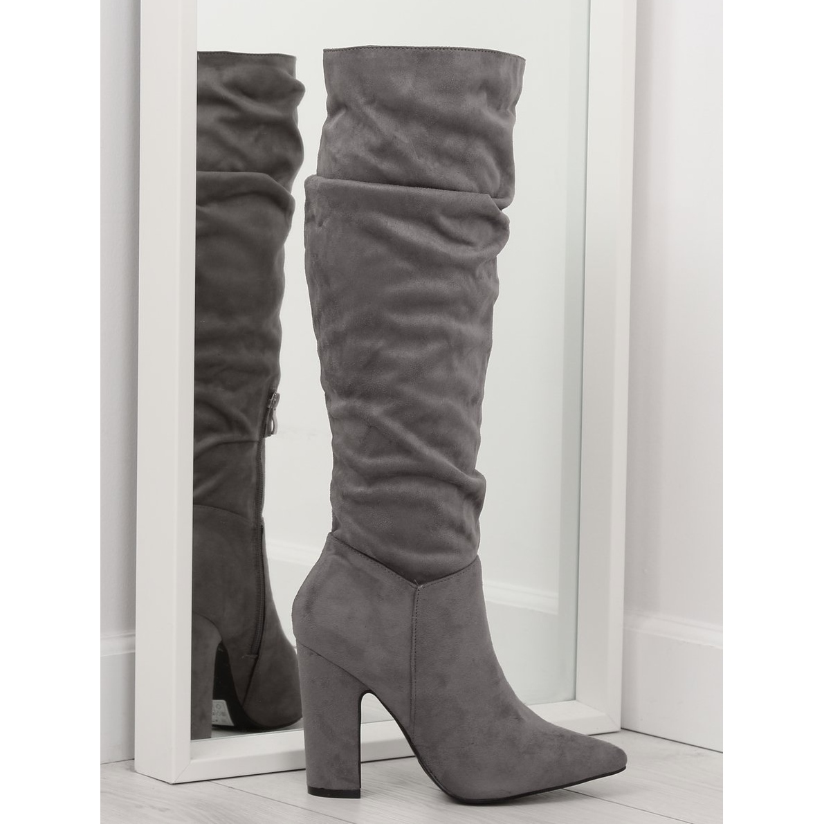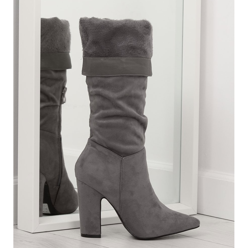 Käytännöllinen sivuvetoketju helpottaa kenkien pukemista ja riisumista, ja vakaa tolppa varmistaa käyttömukavuuden. Päällisen harmaa väri sopii täydellisesti mustaan pohjaan, minkä ansiosta nämä saappaat sopivat moniin tyyleihin.