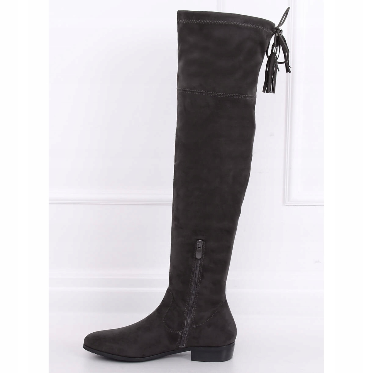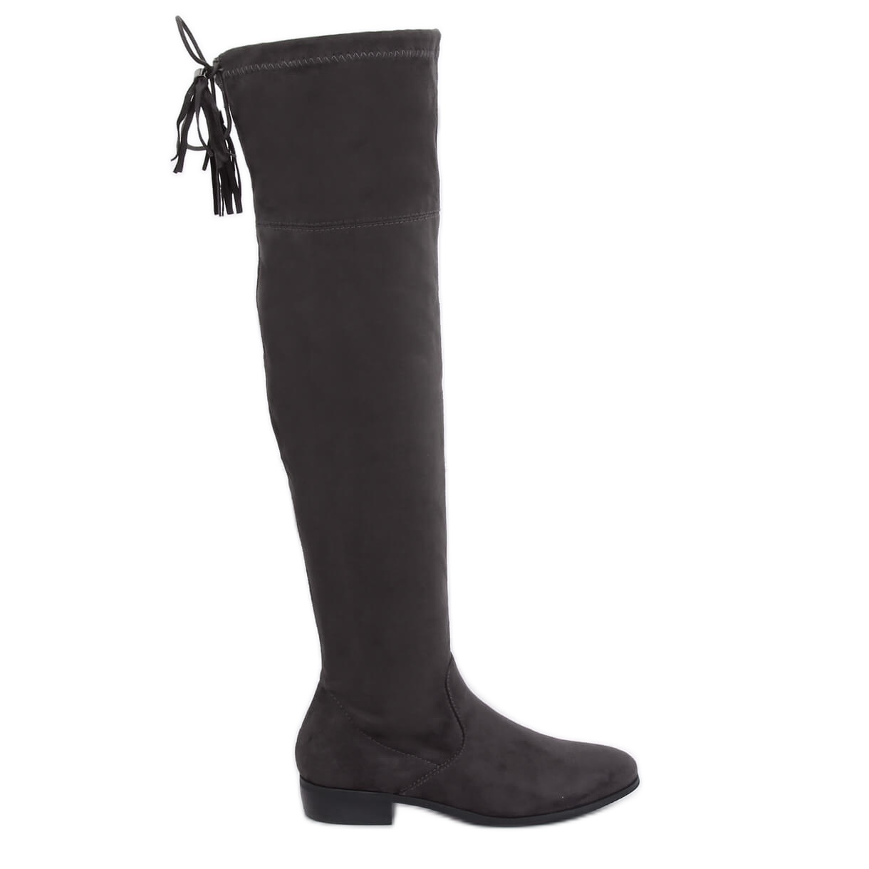Muskettisotureilla on mantelivarvas, joka antaa heille tyylikkään muodon, ja litteä 2,0 cm kantapää tekee niistä mukavat käyttää koko päivän. Polven yläpuolelle ulottuva korkea päällinen korostaa figuuria ja harmaa väri sopii viimeisimpiin trendeihin, samalla kun se on universaali lisäys mihin tahansa vaatekaappiin.