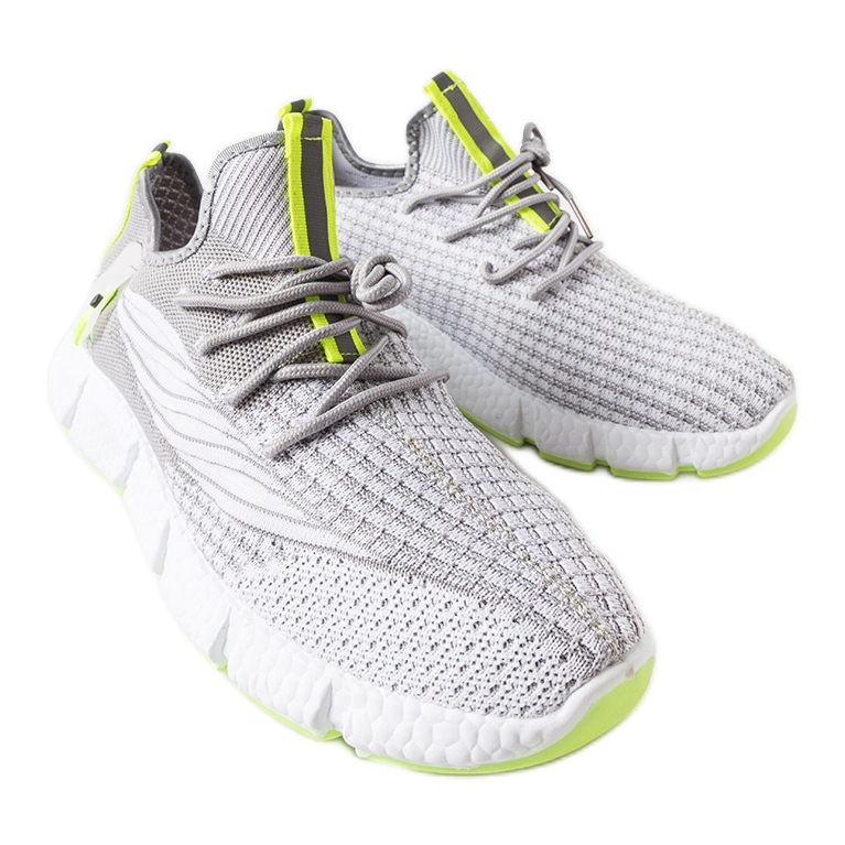 Pyöreä kärki tuo ainutlaatuisen visuaalisen aksentin, mikä tekee jalkineista paitsi toiminnallisia myös esteettisiä. Harmaa päällinen yhdistettynä vihreään pohjaan luo harmonisen kokonaisuuden ja valkoinen lisäys korostaa kenkien modernia luonnetta. Ulkomateriaali ja kankaasta valmistettu sisäosa tarjoavat mukavuutta ja hengittävyyttä, mikä tekee niistä ihanteellisen valinnan moneen tilanteeseen.
