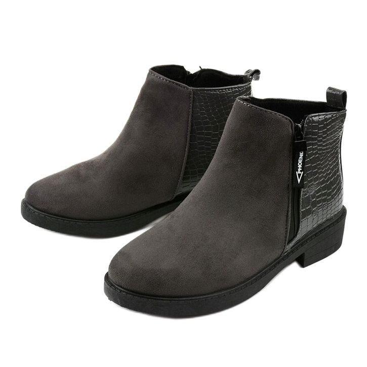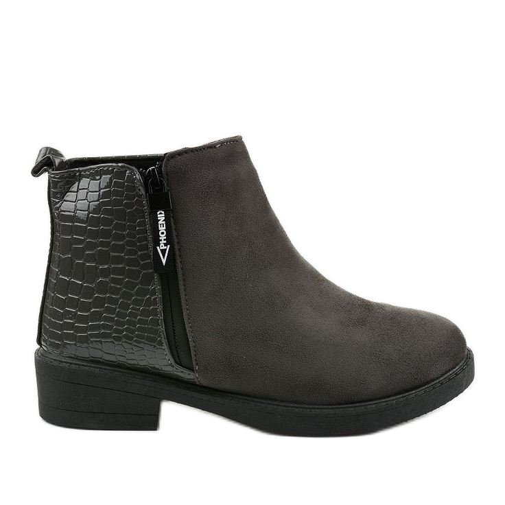 Genesario-harmaat mokkanahkasaappaat ovat täydellinen valinta naisille, jotka arvostavat eleganssia ja mukavuutta. Nämä ympäristöystävällisestä mokkanahkasta valmistetut nilkkurit yhdistävät modernin muotoilun kestävyyteen. Päällisen selkä ja sivut on koristeltu ekologisella kiiltonahalla, jossa on hienovarainen käärmekuvio, joka lisää ainutlaatuista luonnetta.