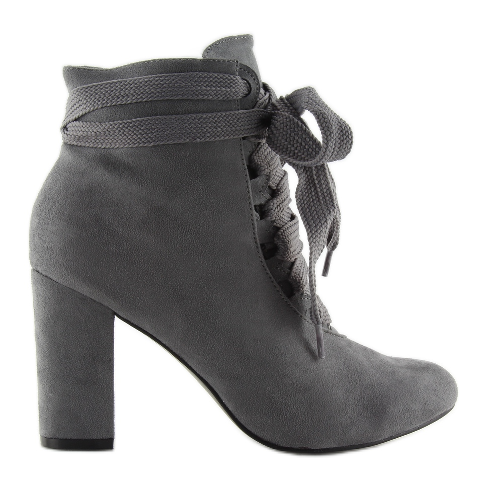 Yksityiskohdat: Harmaat nauhasaappaat korkokenkolla Bs083