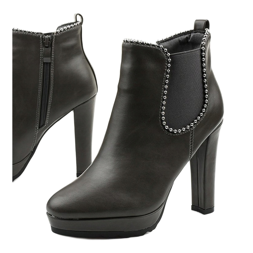 Löydä eleganssia ja mukavuutta Circusin harmaissa korkeakorkoisissa nilkkureissa. Nämä erittäin tyylikkäät ekologisesta nahasta valmistetut jalkineet erottuvat paitsi muodikkaasta muotoilustaan, myös huomioistaan yksityiskohtiin. Strassilla koristellut saappaat lisäävät kiiltoa mihin tahansa tyyliin, ja pyöreä kärki tekee niistä mukavat käyttää.