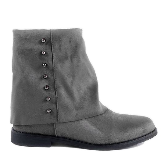 Yksityiskohdat: Harmaat saappaat päällystetyssä Lanan kiilamaisessa kantapäässä