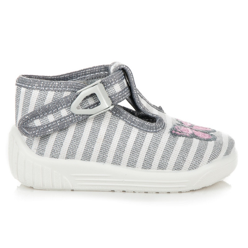 Tyylikkäät ja mukavat tossut tytöille, täydelliset kotiin ja päiväkotiin. Valmistettu ilmavasta kankaasta, koristeltu hienovaraisella perhosella - niissä yhdistyvät estetiikka ja toimivuus. Kiinnitetään soljella, jonka ansiosta ne istuvat hyvin jalkaan myös leikkiessä.